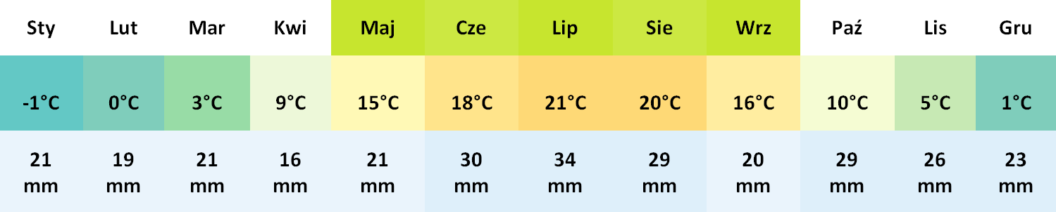 Średnie temperatury i opady deszczu: